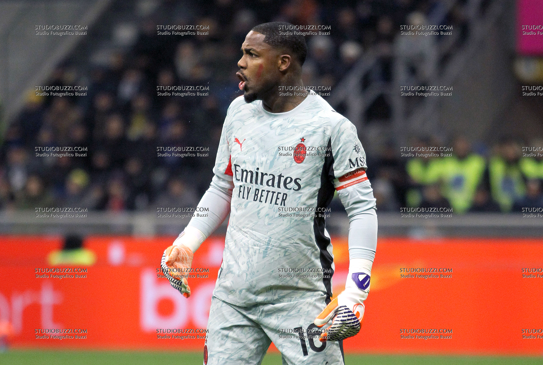 MIKE MAIGNAN, Milan, Serie A, 2025-26, Inter vs Milan 0-1, 23-11-2025, Azione, Action, Single shot, Close up