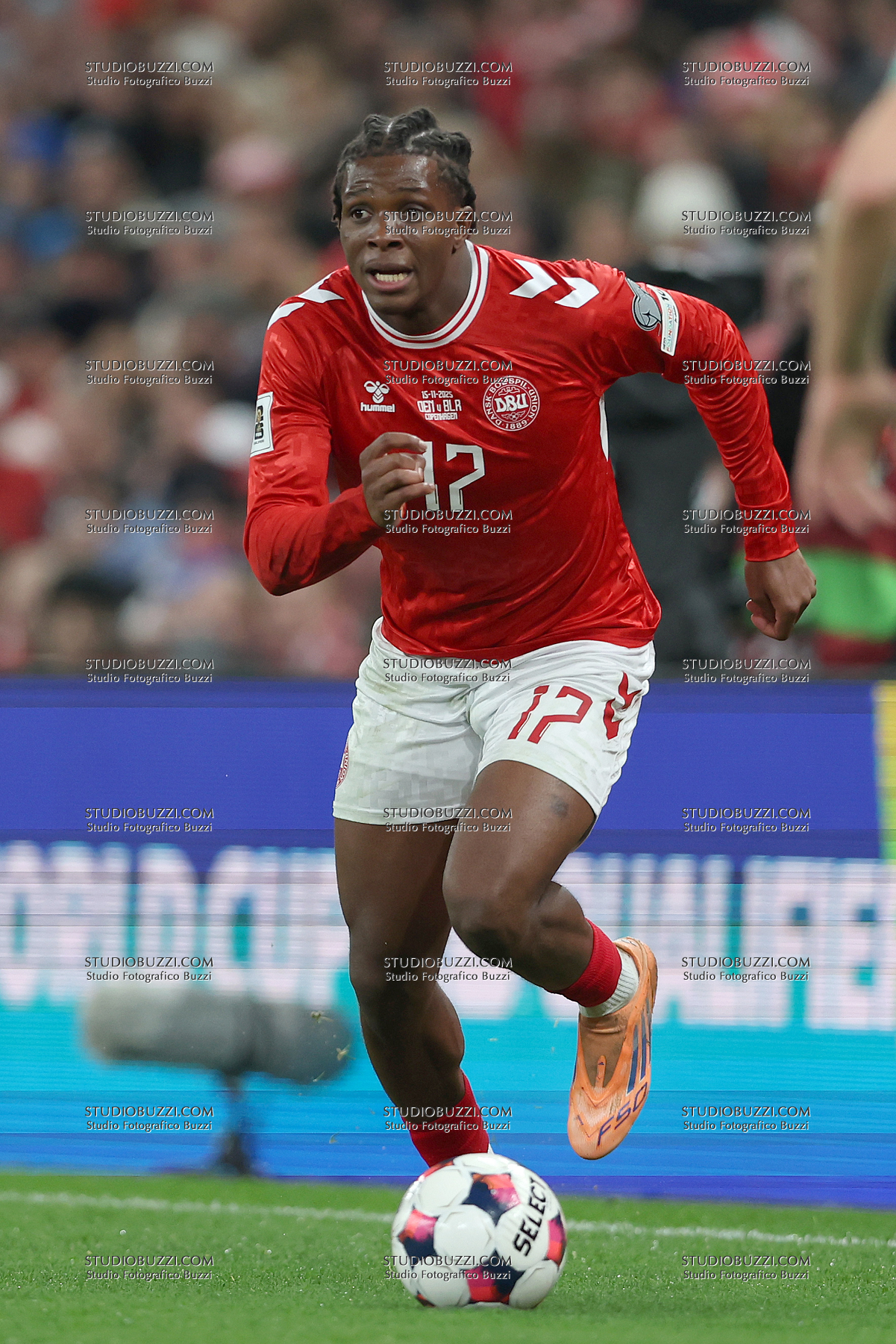 PATRICK DORGU, Danimarca, World Cup 2026 Qualyfing, Denmark vs Belarus 2-2, 15-11-2025, Action, Azione, Single shot