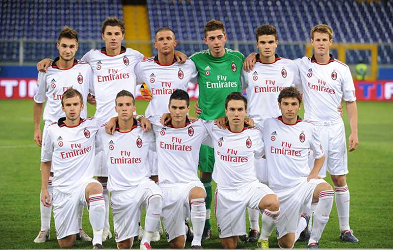 Evento: Supercoppa primavera tim 2010 genoa-milan; Argomento: Calcio; Periodo: 2010/11; Categoria: MILAN; Soggetto: MARCO EZIO FOSSATI, NICOLA PASINI, SIMONE CALVANO, DAVIDE DI FABIO, GIACOMO BERETTA, MICHELANGELO ALBERTAZZI MITJA NOVINIC, SIMONE VERDI, ANDREA DE VITO, ADRIA CARMONA, LUCA GHIRINGHELLI.; Nazione: ITALIA; Descrizione: AZIONE; Luogo: STADIO; Città: GENOVA;