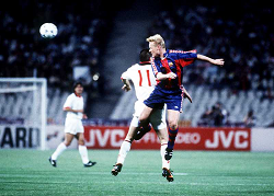 Evento: Finale coppa campioni champions league 1993/94 milan-barcellona; Argomento: Calcio; Periodo: 1993/94; Categoria: BARCELLONA; Soggetto: RONALD KOEMAN; Nazione: OLANDA; Descrizione: CONTRASTO; Luogo: STADIO; Città: ATENE;