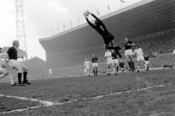 Evento: Coppa uefa semi finale ritorno milan-tottenham h 1-1; Argomento: Calcio; Periodo: 1971/72; Categoria: MILAN - TOTTENHAM HOTSPUR; Soggetto: ALBERTINO BIGON, PAT JENNINGS; Nazione: Studio Buzzi; Descrizione: CONTRASTO; Luogo: STADIO; Città: MILANO;
