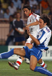 Evento: Supercoppa uefa 2003/04 milan-porto; Argomento: Calcio; Periodo: 2003/04; Categoria: MILAN; Soggetto: MANUEL RUI COSTA; Nazione: PORTOGALLO; Descrizione: CONTRASTO; Luogo: STADIO; Città: MONACO MONTECARLO;