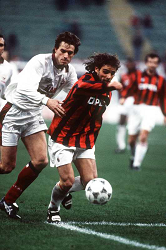 Evento: Coppa uefa 1995/96 milan-bordeaux 2-0; Argomento: Calcio; Periodo: 1995/96; Categoria: MILAN; Soggetto: MARCO SIMONE; Nazione: ITALIA; Descrizione: CONTRASTO; Luogo: STADIO; Città: MILANO;
