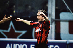 Evento: Supercoppa europea uefa 1993 andata parma-milan 0-1; Argomento: Calcio; Periodo: 1993/94; Categoria: MILAN; Soggetto: JEAN PIERRE PAPIN, AC Milan, Celebrating, UEFA Super Cup Final, First Leg, Parma vs Milan 0-1, Parma; Nazione: Studio Buzzi; Descrizione: ESULTANZA; Luogo: STADIO; Città: PARMA;