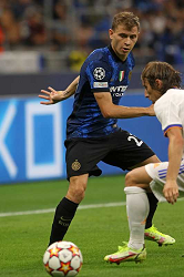Evento: Champions league 2021-22 inter-real madrid 0-1; Argomento: Calcio; Periodo: 2021/22; Categoria: INTER; Soggetto: NICOLO BARELLA, Inter, Champions League, Inter vs Real Madrid 0-1, Milano; Nazione: Studio Buzzi; Descrizione: CONTRASTO; Luogo: STADIO; Città: MILANO;