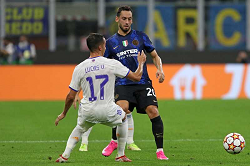 Evento: Champions league 2021-22 inter-real madrid 0-1; Argomento: Calcio; Periodo: 2021/22; Categoria: INTER; Soggetto: HAKAN CALHANOGLU, Inter, Champions League, Inter vs Real Madrid 0-1, Milano; Nazione: Studio Buzzi; Descrizione: CONTRASTO; Luogo: STADIO; Città: MILANO;
