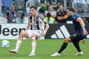 KENAN YILDIZ, Juventus, HAKAN CALHANOGLU, Inter, Serie A, 2025-26, Juventus vs Intar 4-3, 13-09-2025, Azione, Action, Single shot, Contrasto