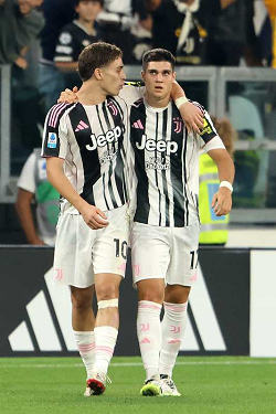 KENAN YILDIZ, DUSAN VLAHOVIC, Juventus, Serie A, 2025-26, Juventus vs Intar 4-3, 13-09-2025, Esultanza, Celebration, Jubel