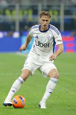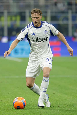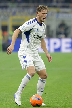 STEFAN POSCH, Como, Serie A, 2025-26, Inter vs Como 4-0, 06-12-2025, Azione, Action, Single shot
